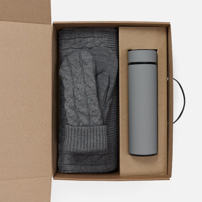 - Материал:шарф, варежки - акрил 100%; термос - нержавеющая сталь, 304; покрытие софт-тач; коробка - микрогофрокартон