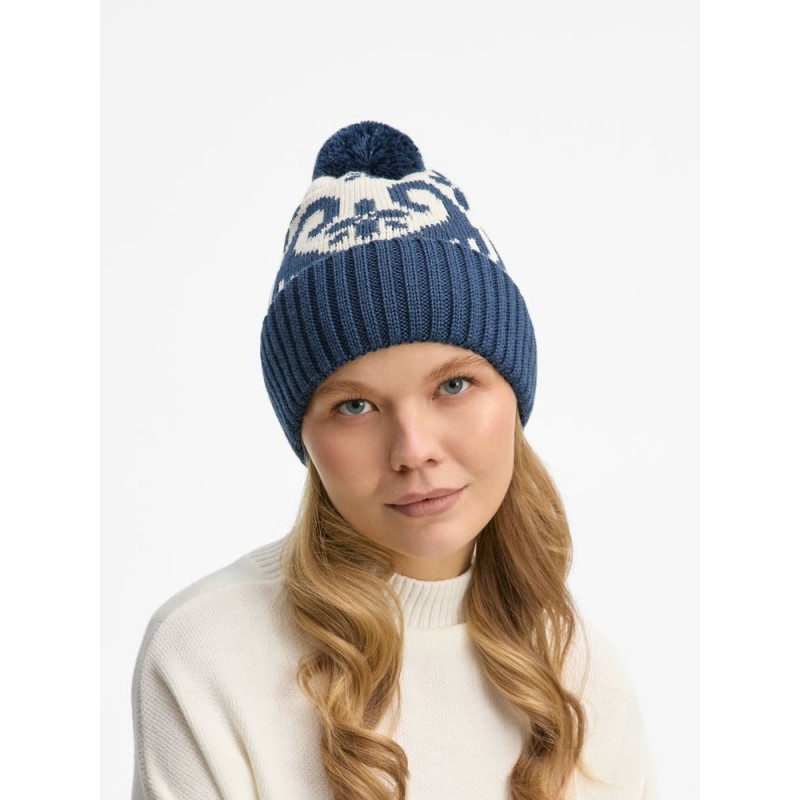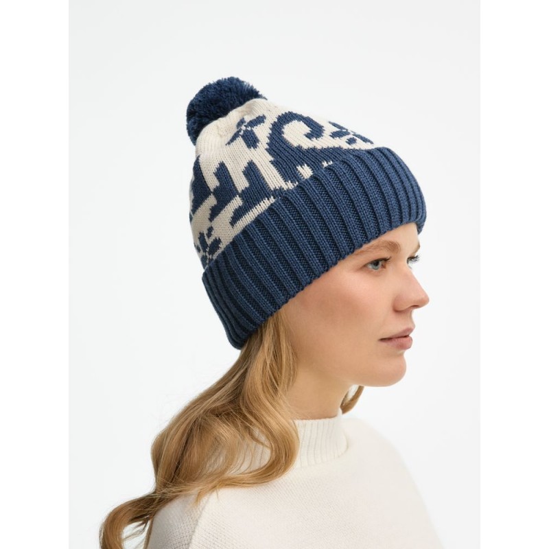 Двухслойная шапка Wintertude выполнена из мягкой полушерстяной пряжи в двух гармоничных цветах. Нерегулируемый отворот на резинке обеспечивает комфортную посадку и надежную защиту от ветра. Объемный помпон и оригинальный рисунок добавляют образу игривости, сохраняя при этом лаконичность силуэта.