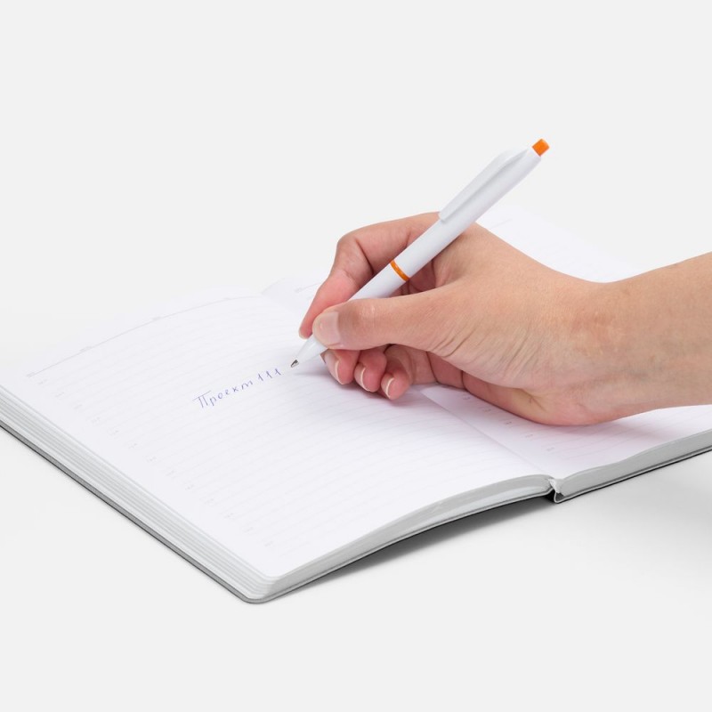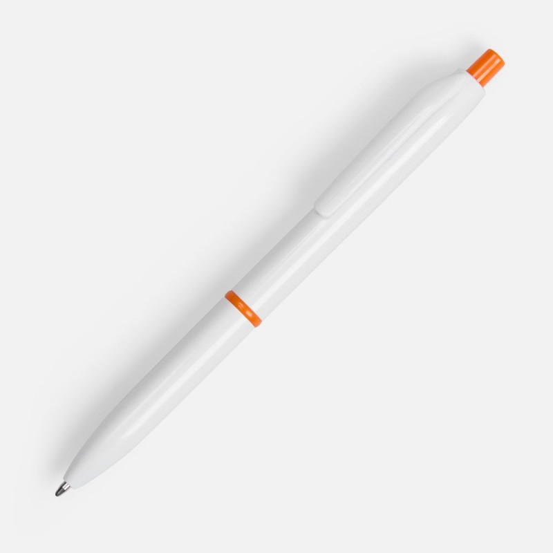 Классическая модель ручки с акцентными деталями: кольцом и кнопкой, — которые дополнят логотип компании.