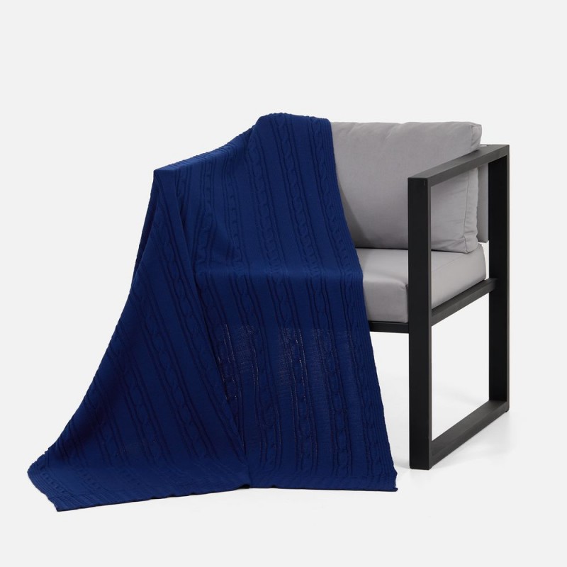 Тонкое переплетение вертикальных кос-жгутов создает благородный стиль, где простота линий встречается с изысканной рельефной текстурой. Плед из мягкого акрила сохраняет тепло, оставаясь удивительно легким и воздушным.