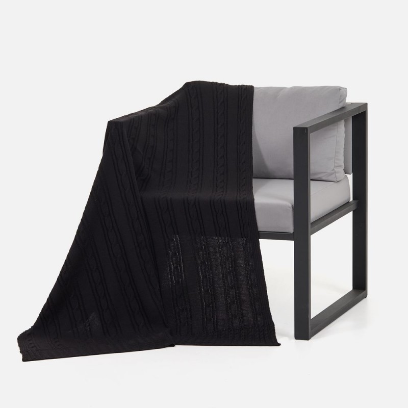Тонкое переплетение вертикальных кос-жгутов создает благородный стиль, где простота линий встречается с изысканной рельефной текстурой. Плед из мягкого акрила сохраняет тепло, оставаясь удивительно легким и воздушным.