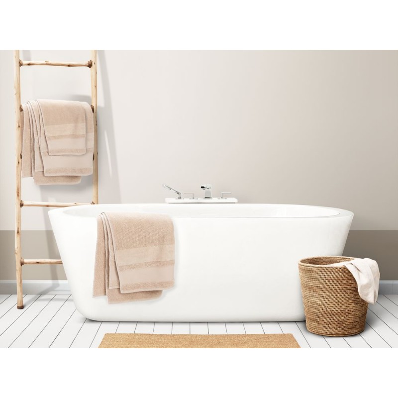 Пышная рельефная структура создает эффект роскошного спа-ухода и быстро впитывает влагу благодаря расположенным пучками петлям, а изящная полоса из стриженных петель с эффектом велюра добавляет ему мягкости и элегантности. Практичный гладкий бордюр станет идеальным холстом для нанесения символики и позволит создать уникальный персональный подарок.