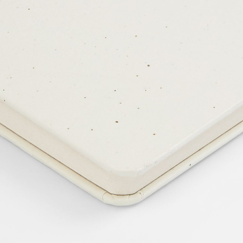 Бумага и обложка произведены из переработанных пакетов из-под молока. Обложка из картона плотностью 140 г/м² .