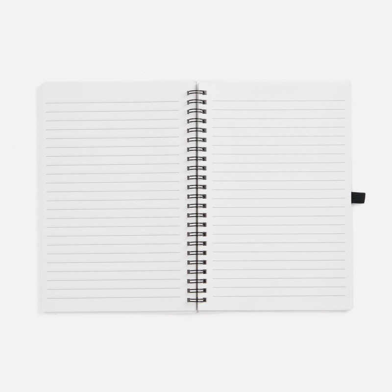 Блокнот из каменной бумаги на пружине с резинкой для ручки.
