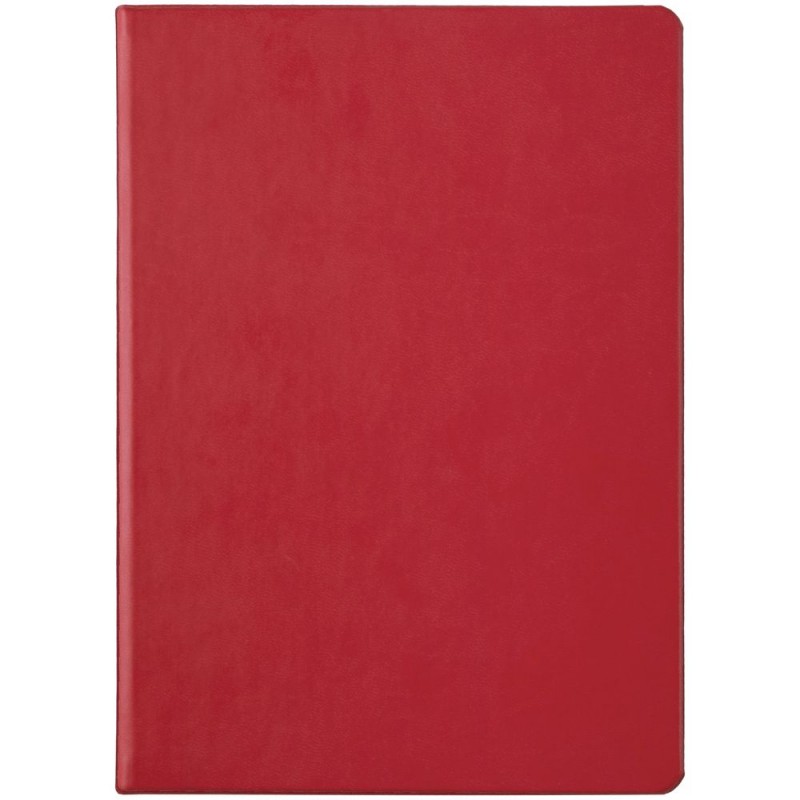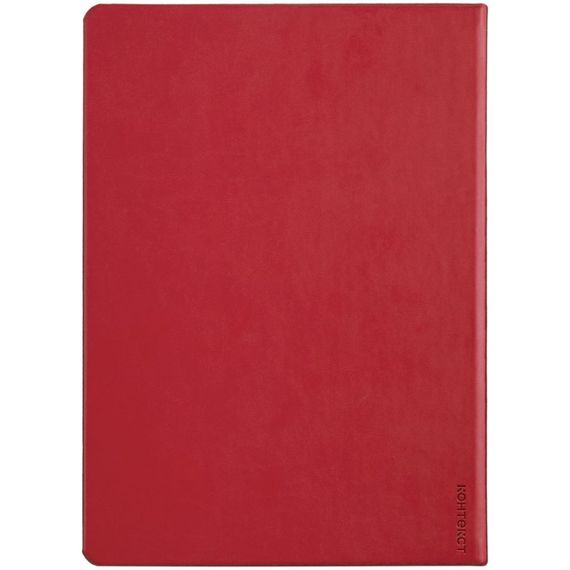Ежедневник с твердой обложкой, выполнен из материала Latte, красный РР, дополнен ляссе в цвет обложки.