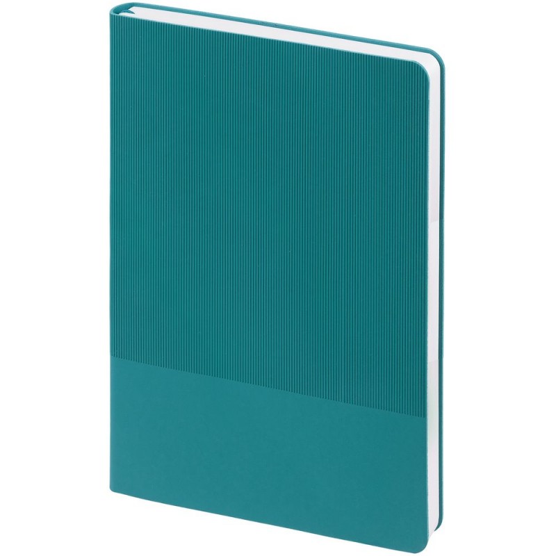 Ежедневник с гибкой обложкой выполнен из материала Soft Touch, цвет морской волны II и Latte, цвет морской волны (внутренний материал); дополнен ляссе бирюзового цвета и фактурным тиснением обложки.