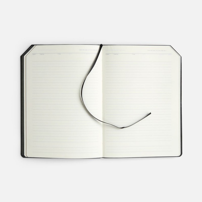Ежедневник с гибкой обложкой, выполнен из материала Espresso, дополнен ляссе черного цвета и хлястиком на кнопке.