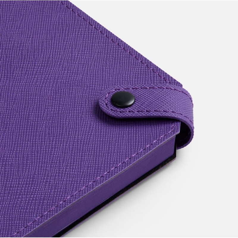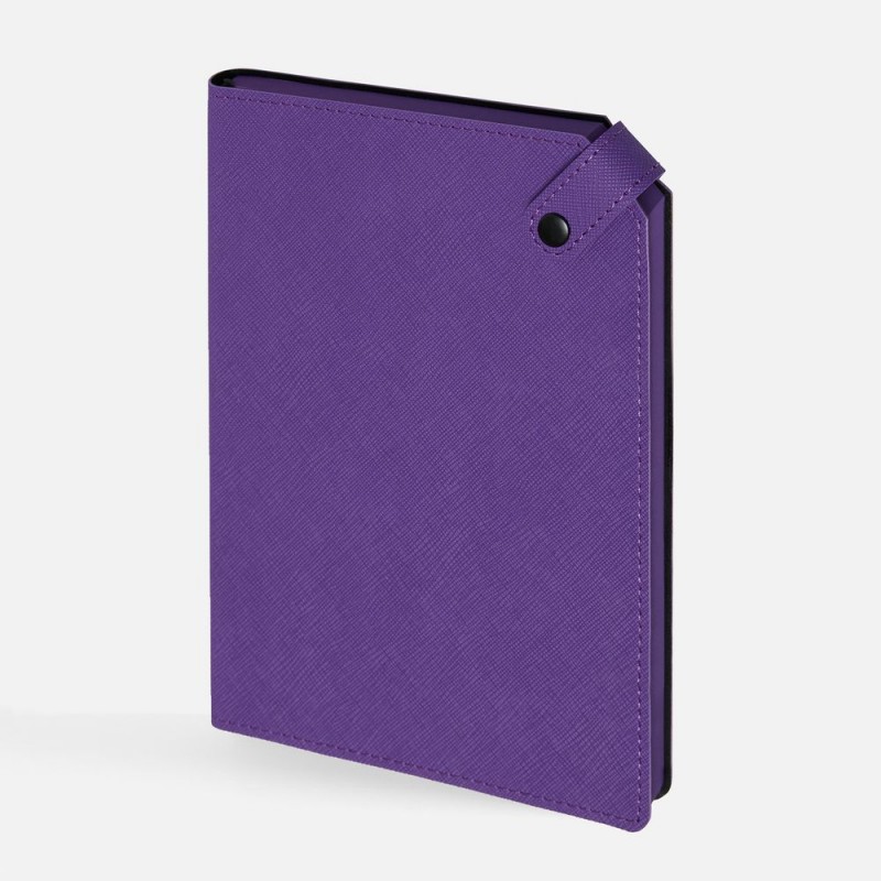 Ежедневник с гибкой обложкой, выполнен из материала Espresso, дополнен ляссе черного цвета и хлястиком на кнопке.