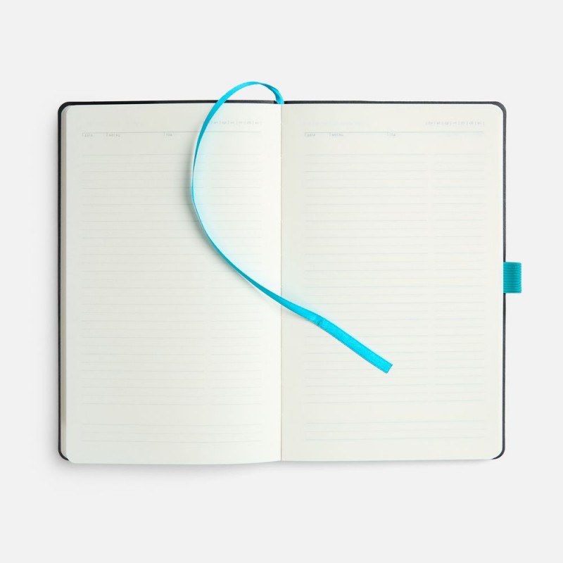 Ежедневник с гибкой обложкой, выполнен из материала Espresso, дополнен цветными ляссе и петлей-резинкой для ручки.