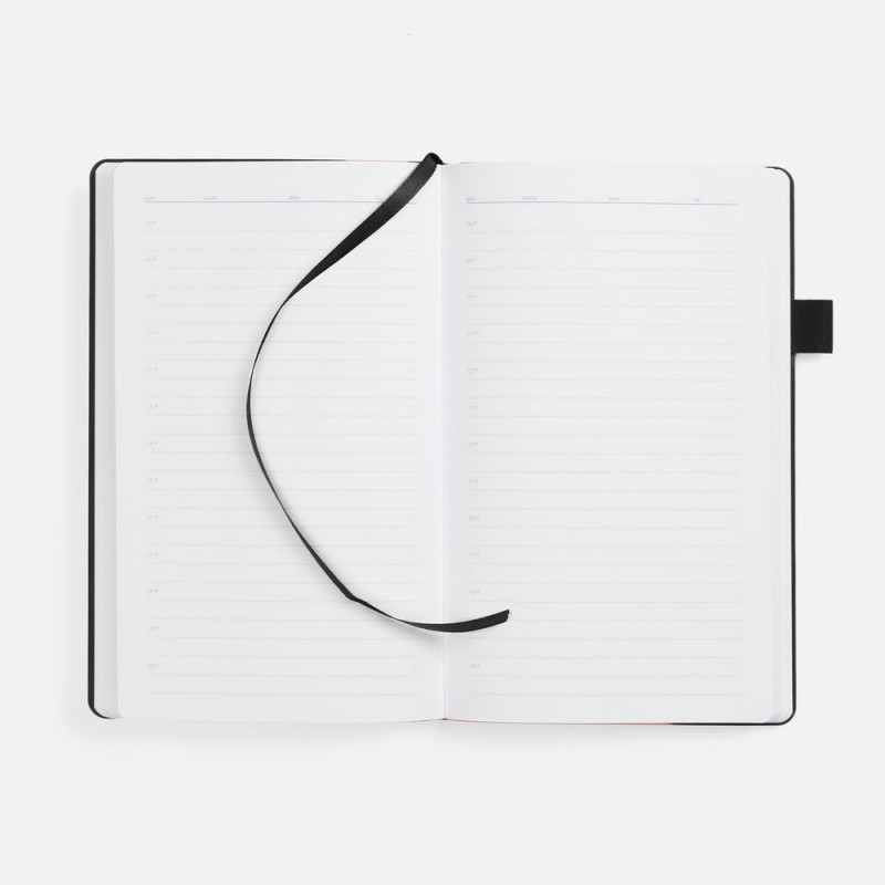 Гибкая обложка, материал обложки — Soft Touch, белый BB и Latte, черный АА; материал петли для ручки — Nice Touch, черный АА. Срез обложки окрашен в черный цвет.