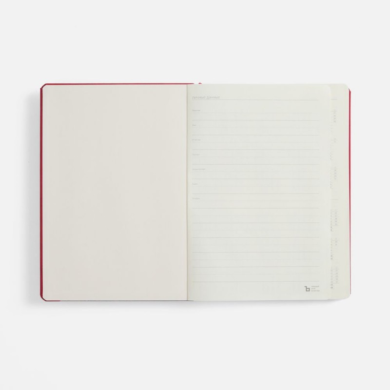 Ежедневник с твердой обложкой, выполнен из материала Nubuck Touch, красный PP, дополнен ляссе в цвет обложки.