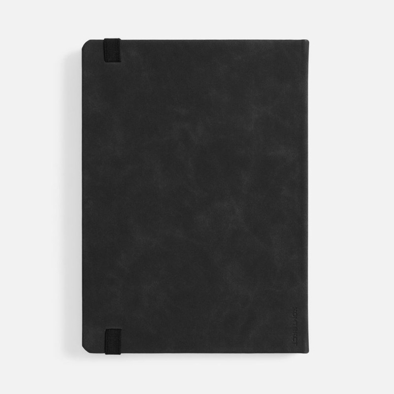 Ежедневник с твердой обложкой, выполнен из материала Nubuck Touch, черный AA, дополнен ляссе в цвет обложки.