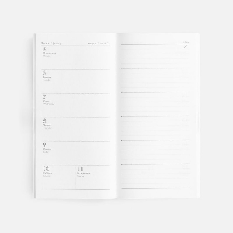 Еженедельник с твердой обложкой с поролоном из искусственной кожи, дополнен декоративной строчкой, капталом и ляссе в цвет.