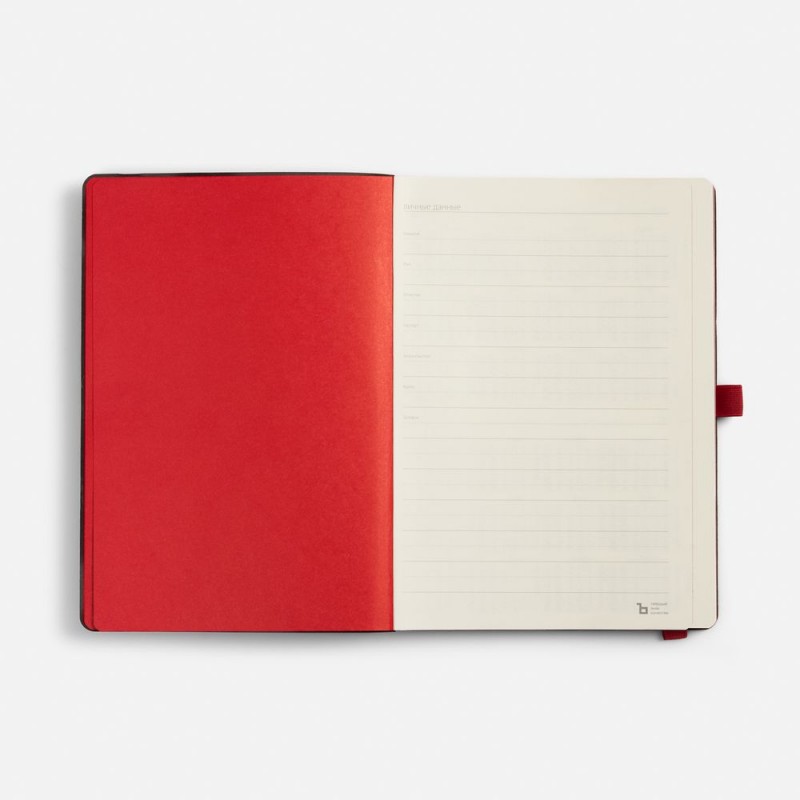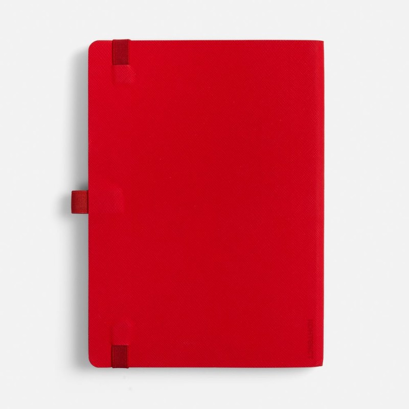 Ежедневник с гибкой обложкой, выполнен из материала Nice Touch Ultra, красный РР, дополнен цветными ляссе и петлей-резинкой для ручки.