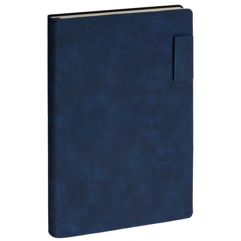 Ежедневник 17х24 см, с гибкой обложкой, выполнен из материала Nubuck Touch, темно-синий ХХ, дополнен петлей-лейблом для ручки и двойным ляссе в цвет материала.