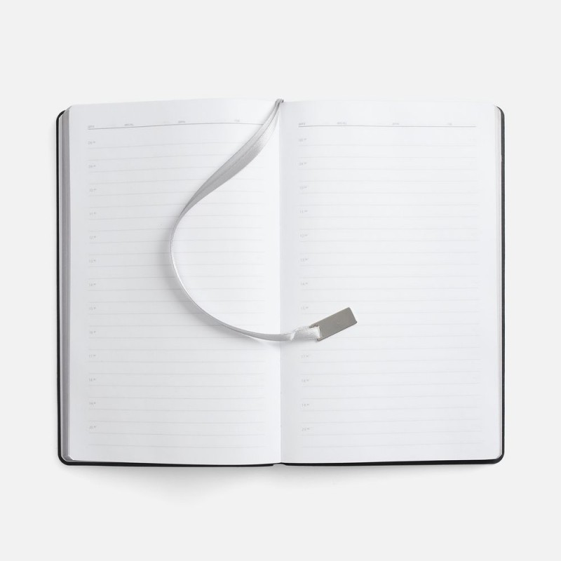 Ежедневник с гибкой обложкой, выполнен из материала Petrus, красный РР, дополнен серым ляссе с металлическим шильдиком.