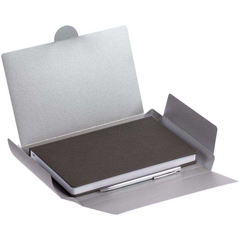 ежедневник - искусственная кожа; ручка - металл; коробка - бумага