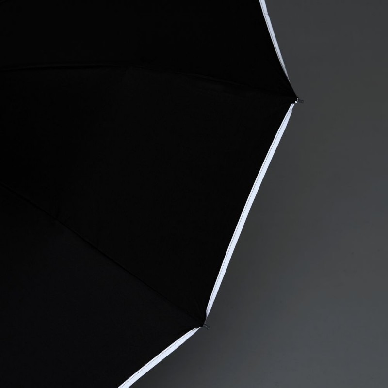 Стильный прочный зонт Tyre не боится ржавчины и нагрузок благодаря каркасу из стекловолокна. Светоотражающий кант делает этот зонт незаменимым спутником в темное время суток, а тактильный рисунок протектора шины на ручке превращает его в продуманный подарок для автолюбителей и партнеров автомобильной сферы.