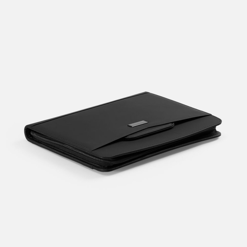 Во вместительной папке предусмотрено множество отделений для визиток, бумаг и письменных принадлежностей — для идеальной организации пространства. Особое преимущество — встроенный блокнот с листами в линейку, который можно легко открепить и положить на его место свои записи, например, для презентаций.