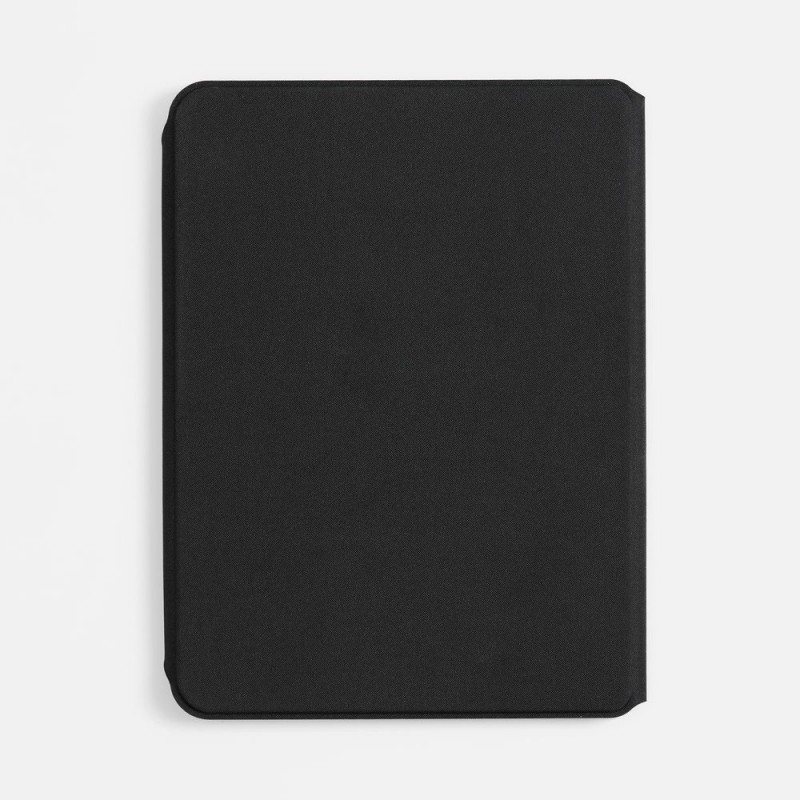 Обложка из ткани на магнитной застежке c деревянной шильдой: