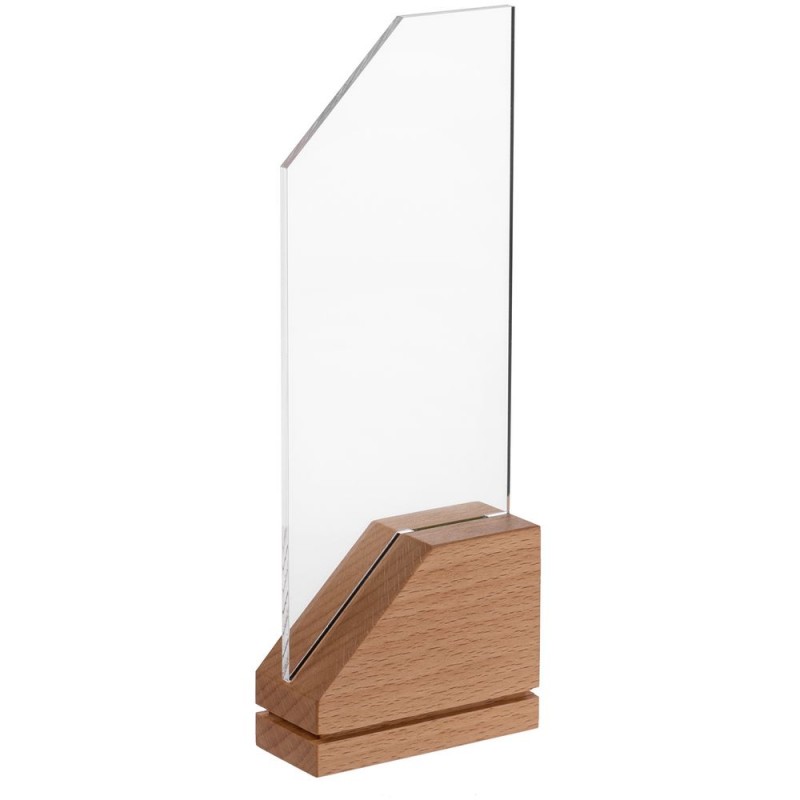 Стела Tribute — это массивное основание из бука с гладкой фактурой и легкая прозрачная вставка из акрила. Идеальный баланс устойчивости и легкости, который важен не только для создания награды привлекательной формы, но и для достижения результата, который этой наградой будет отмечен.
