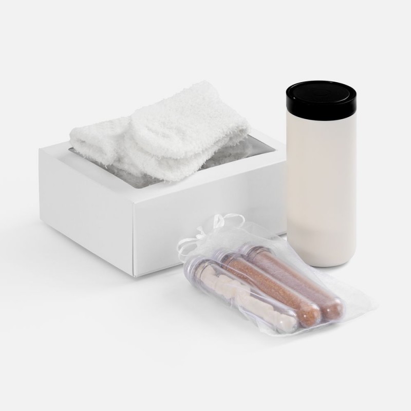 Домашний и такой уютный набор Heimen демонстрирует триумф тепла и комфорта. Чашка ароматного какао с нежными маршмеллоу в стильном термостакане, нежные объятия пушистых носков на ногах — то, что нужно для расслабляющего и умиротворяющего вечера.