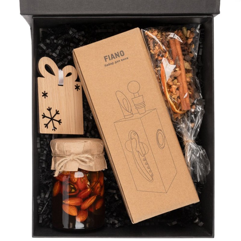 Набор упакован в картонную коробку черного цвета с наклейкой и крышкой на магните.