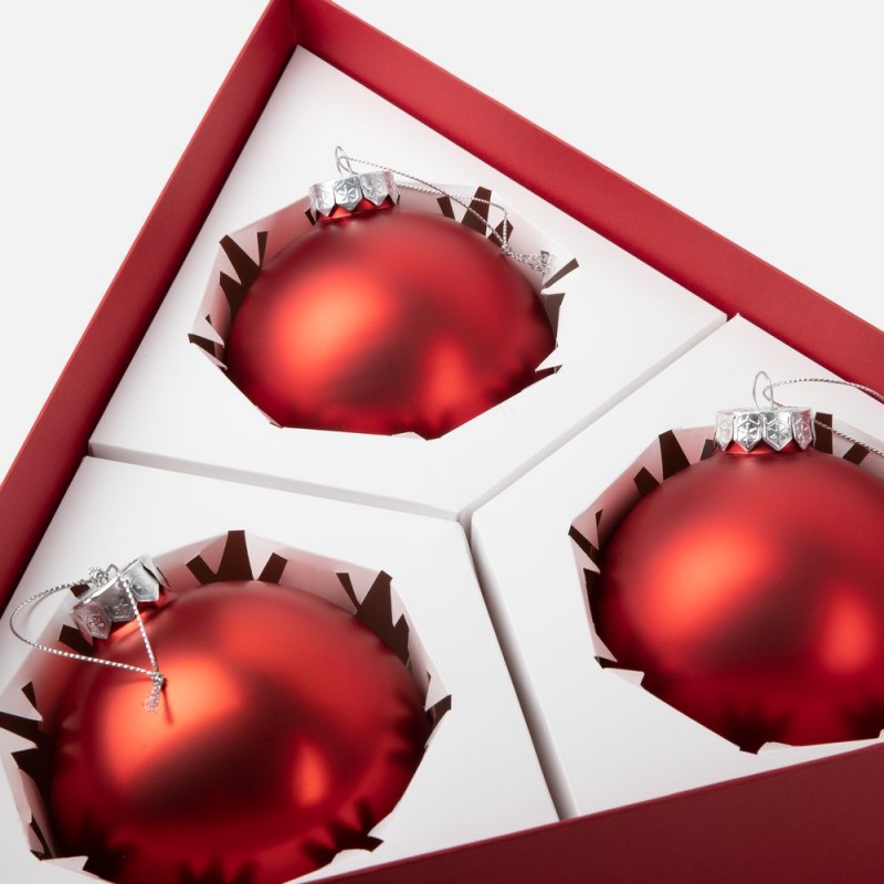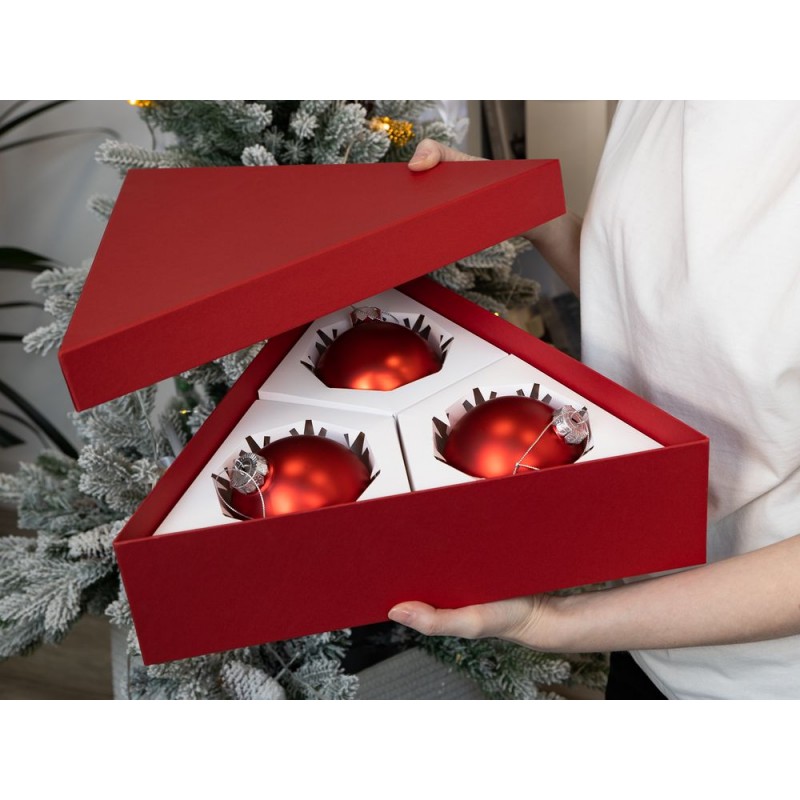 А еще Finery Trio — это маленькое произведение искусства, созданное с вниманием к деталям: шары диаметром 10 см бережно уложены в индивидуальные ложементы с изящным вырезом в форме снежинки, а стильная коробка придает подарку особую торжественность. Нестандартная треугольная форма упаковки подчеркивает оригинальность композиции и делает презент по‑настоящему запоминающимся.