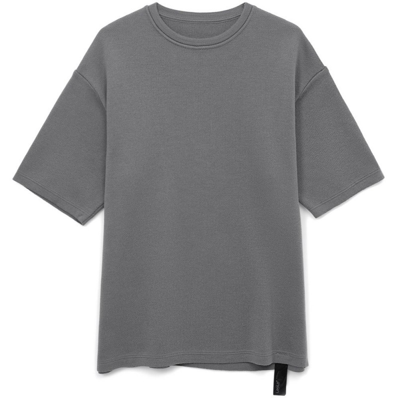Siluetti Volumica — плотный вязаный джемпер-футболка прямого кроя с круглым вырезом и спущенной линией плеча. Фирменная бирка из силиконовой ленты станет интересной деталью, привлекающей внимание на фоне общей лаконичности модели.
