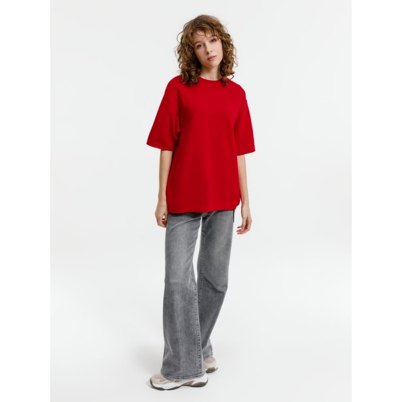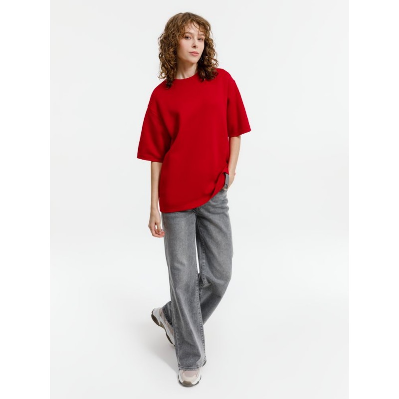 Siluetti Volumica — плотный вязаный джемпер-футболка прямого кроя с круглым вырезом и спущенной линией плеча. Фирменная бирка из силиконовой ленты станет интересной деталью, привлекающей внимание на фоне общей лаконичности модели.