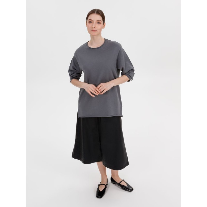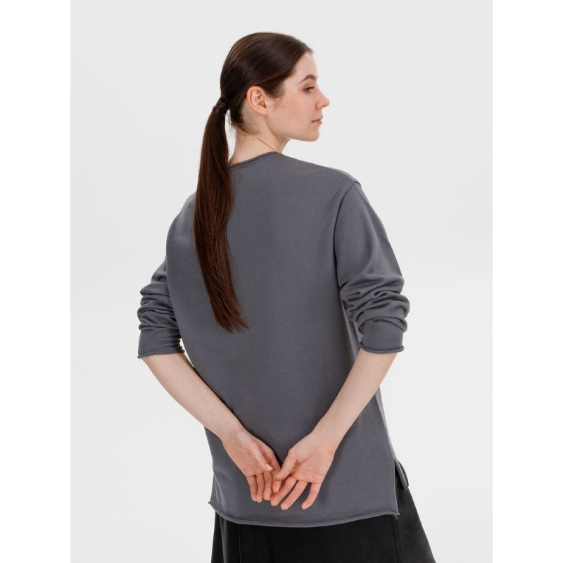 Лонгслив Fuori средней плотности с широким воротом, спущенной линией плеча и свободно подворачивающимися краями по низу, на рукавах и вороте, которые добавляют модели еще большей расслабленности. Прозрачная бирка с логотипом бренда на рукаве не нарушает минималистичности образа.