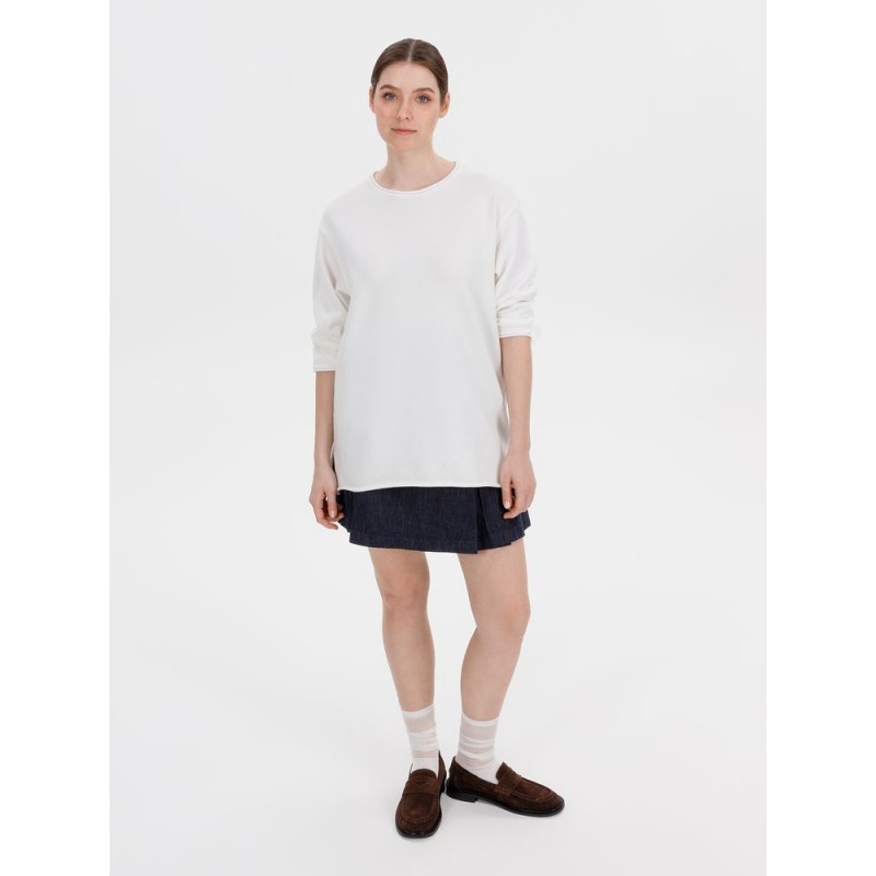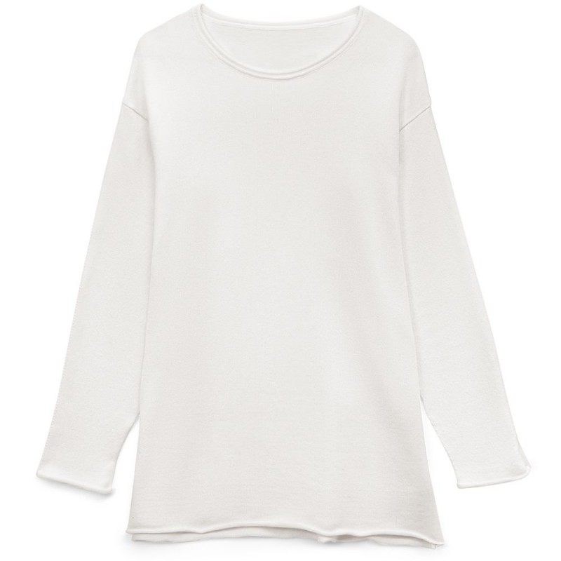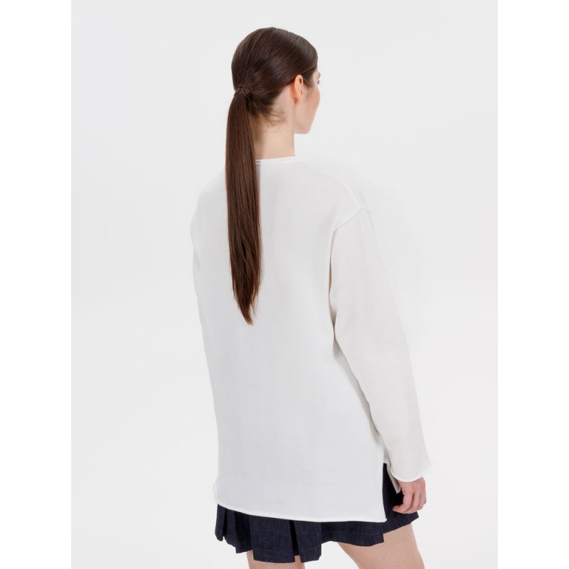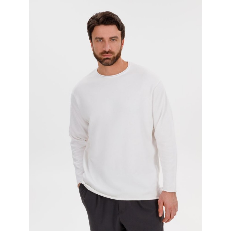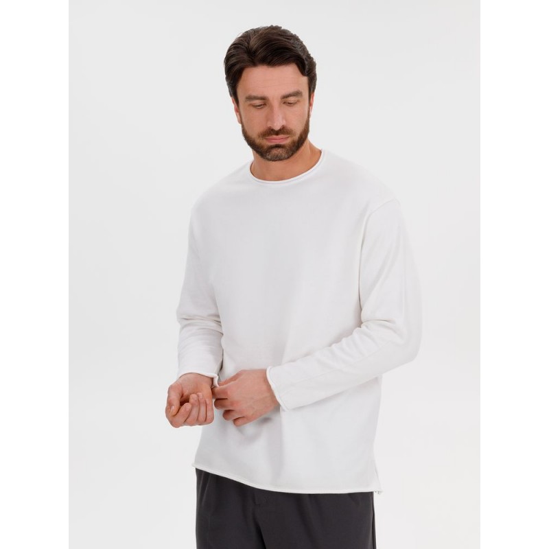 Лонгслив Fuori средней плотности с широким воротом, спущенной линией плеча и свободно подворачивающимися краями по низу, на рукавах и вороте, которые добавляют модели еще большей расслабленности. Прозрачная бирка с логотипом бренда на рукаве не нарушает минималистичности образа.