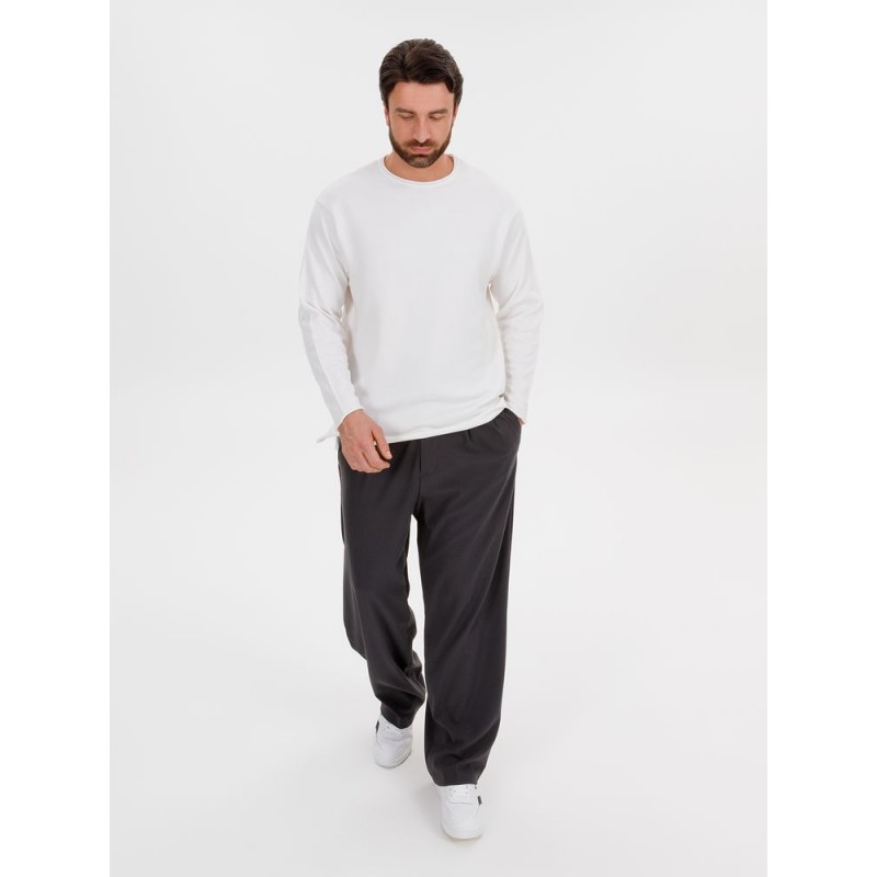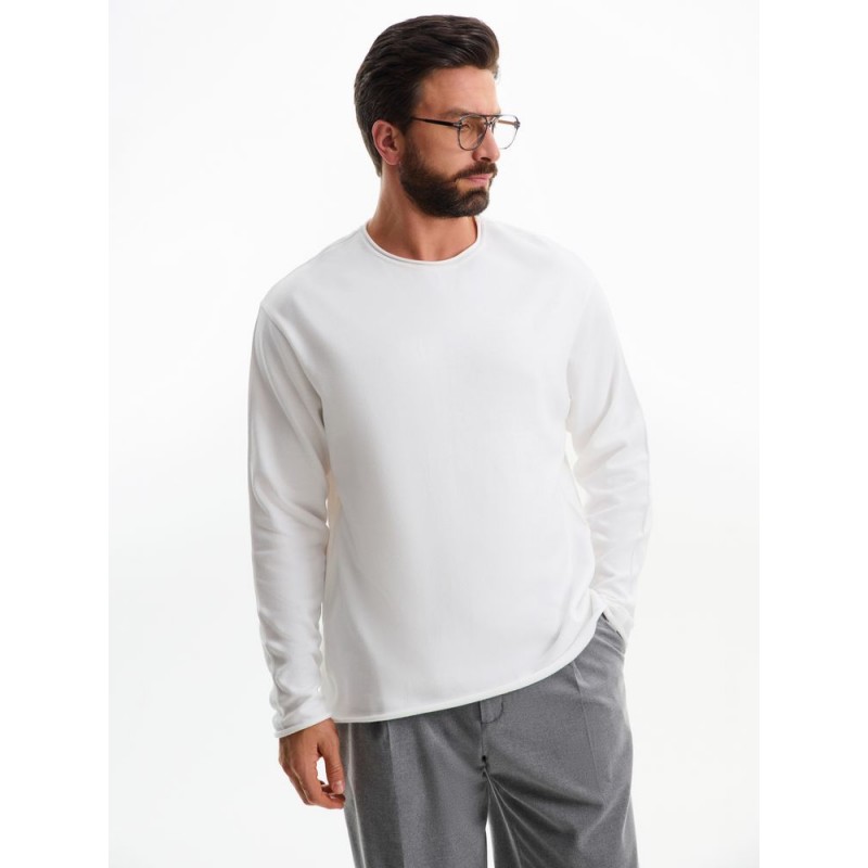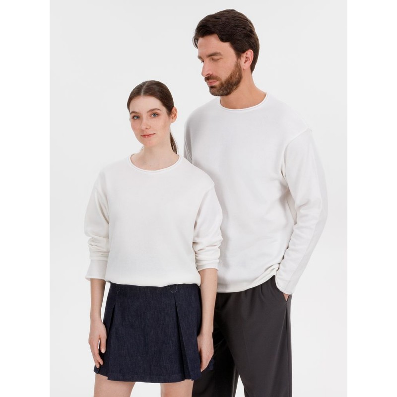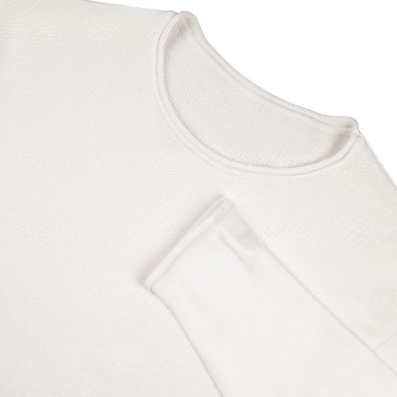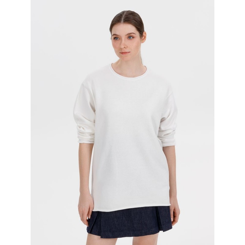 Лонгслив Fuori средней плотности с широким воротом, спущенной линией плеча и свободно подворачивающимися краями по низу, на рукавах и вороте, которые добавляют модели еще большей расслабленности. Прозрачная бирка с логотипом бренда на рукаве не нарушает минималистичности образа.