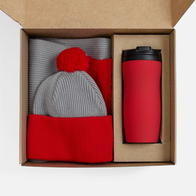 - Материал:шарф, шапка - акрил 100%; термостакан - нержавеющая сталь, покрытие софт-тач, крышка, внутренняя колба - пластик; покрытие софт-тач; крышка, внутренняя колба - пластик; коробка - микрогофрокартон, Т-23Е