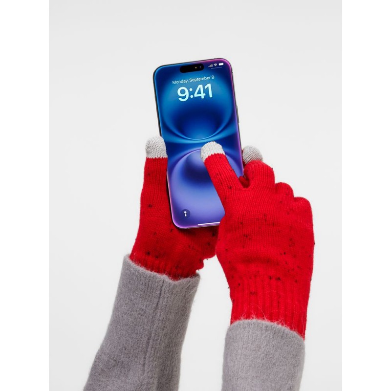 Перчатки Spotti Senso с токопроводящими волокнами на кончиках пальцев позволяют легко управлять смартфоном в любой мороз. Эргономичный крой и эластичная пряжа обеспечивают удобную посадку, сохраняя тепло и свободу движений. Как и в шапке, здесь использованы контрастные нити — визитная карточка коллекции.