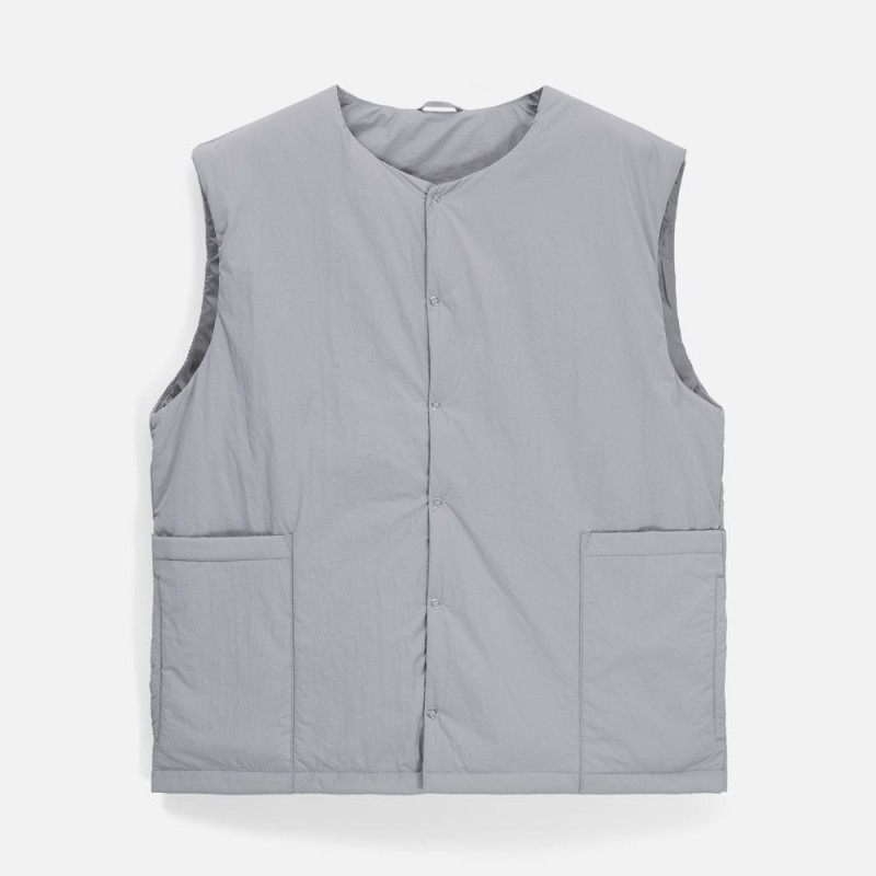 Коллекция верхней одежды, что легко согревает и обволакивает, как теплый и ласковый ветер, и в то же время ветра совсем не боится. Жилет из нейлона с текстурой мятого шелка создает приятный микроклимат, в котором воздушность сочетается с комфортной терморегуляцией.