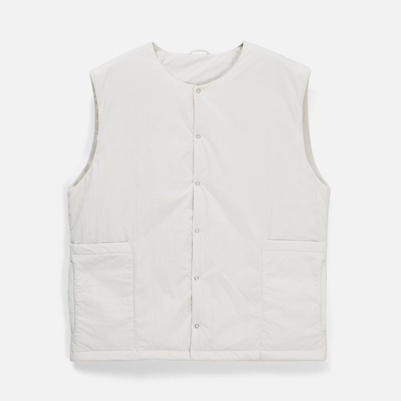 Коллекция верхней одежды, что легко согревает и обволакивает, как теплый и ласковый ветер, и в то же время ветра совсем не боится. Жилет из нейлона с текстурой мятого шелка создает приятный микроклимат, в котором воздушность сочетается с комфортной терморегуляцией.