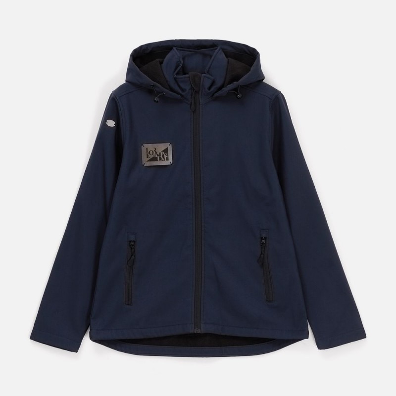Мужская куртка софтшелл на молнии и с капюшоном.