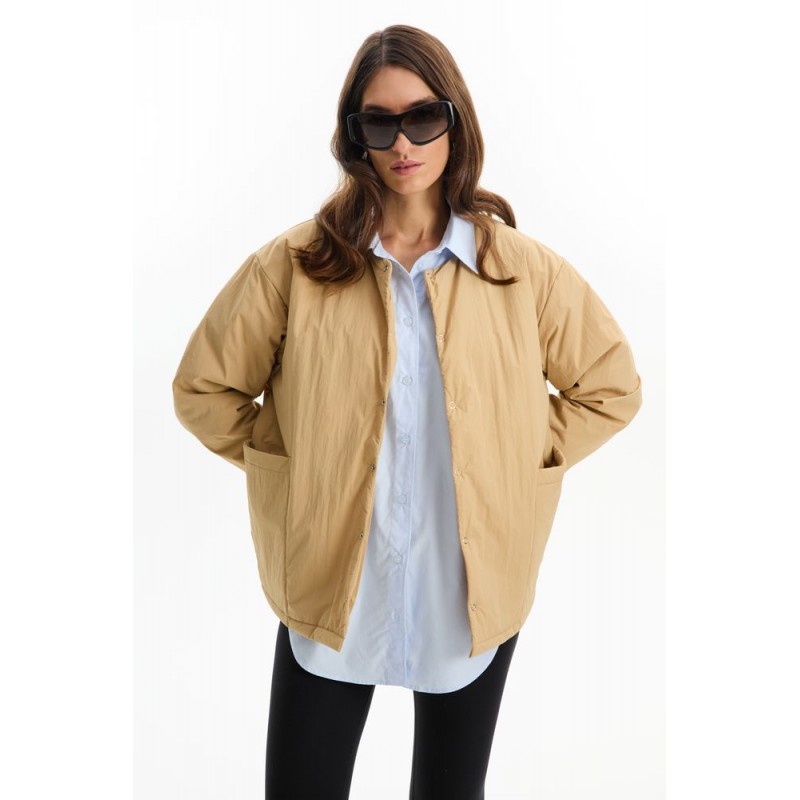 - Центральная застежка — металлические кнопки серебристого цвета