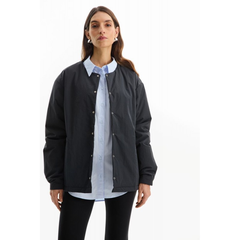 - Центральная застежка — металлические кнопки серебристого цвета