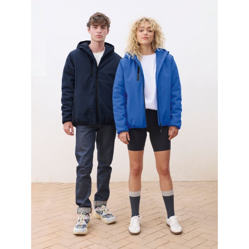 Мужская куртка софтшелл на молнии и с капюшоном.
