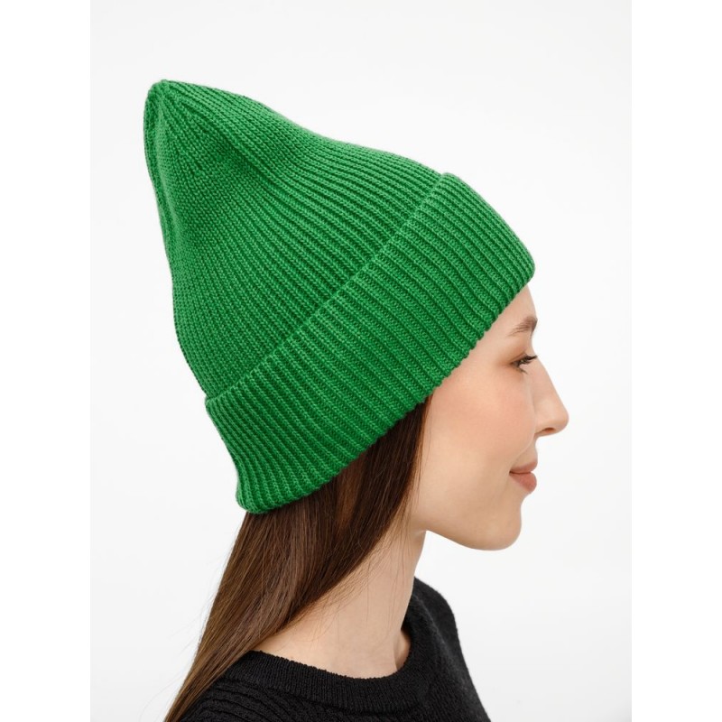 Однослойная шапка фактурной вязки с отворотом.