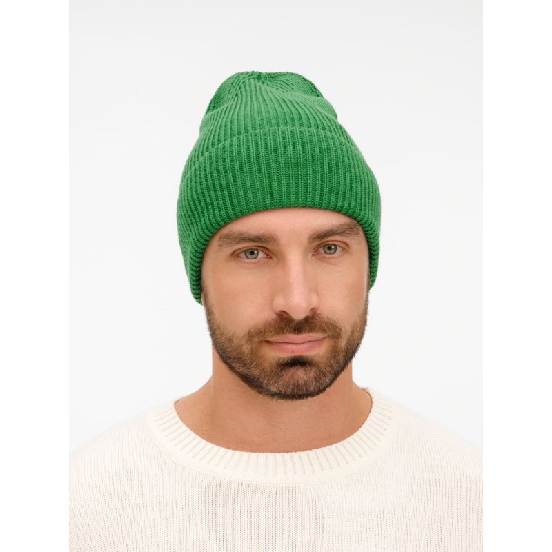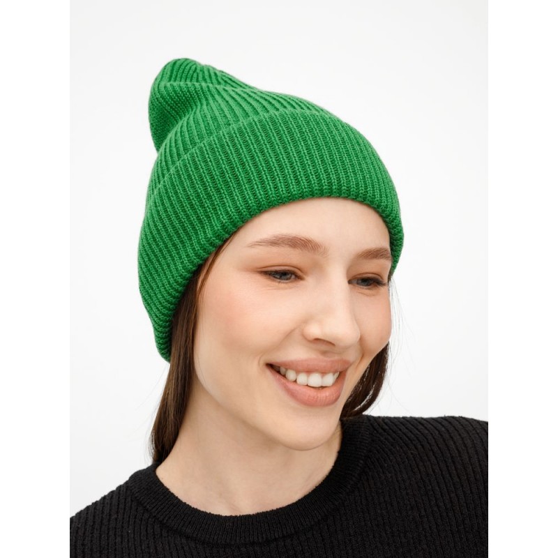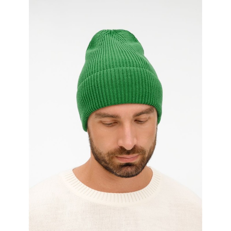 Удлиненный силуэт шапки Nobilis Mono из мягкой полушерстяной пряжи с широким отворотом создает стильный современный образ, а фактурная вязка добавляет объем и выразительность.