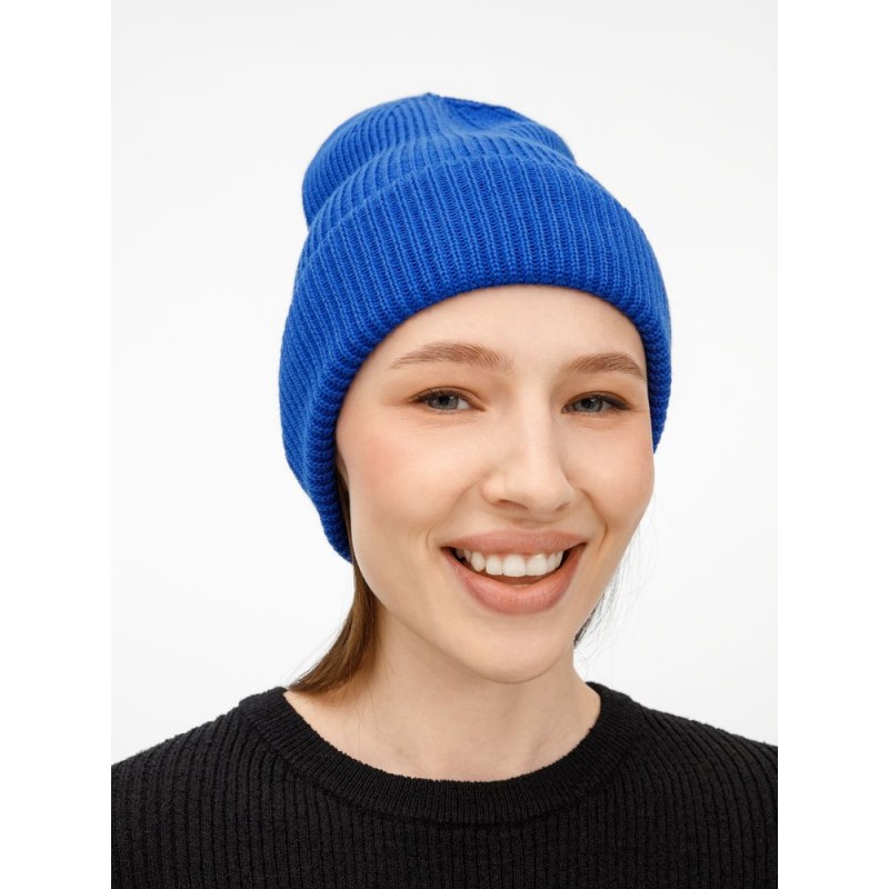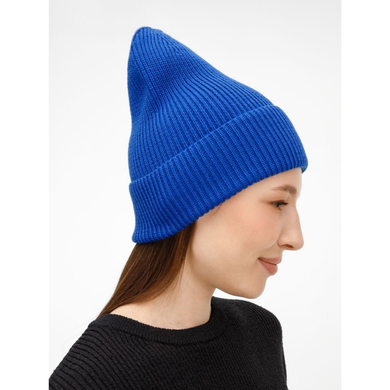 Удлиненный силуэт шапки Nobilis Mono из мягкой полушерстяной пряжи с широким отворотом создает стильный современный образ, а фактурная вязка добавляет объем и выразительность.