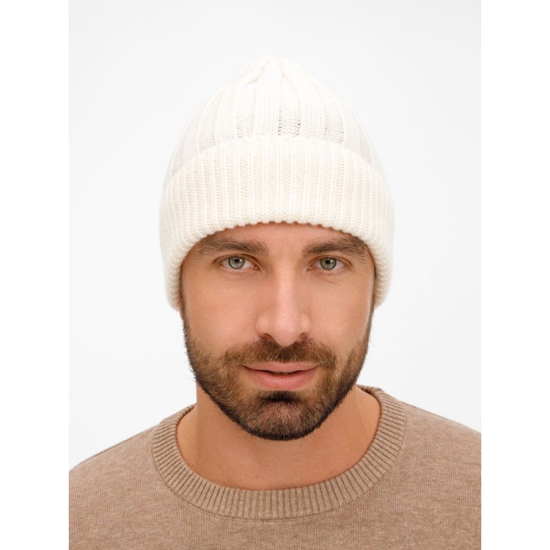 Однослойная шапка фактурной вязки с отворотом.
