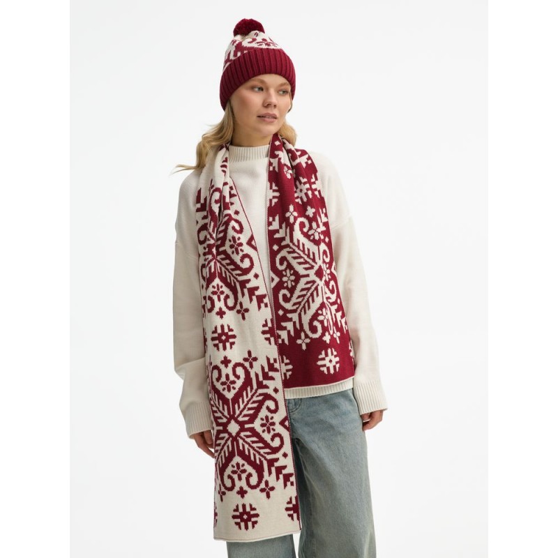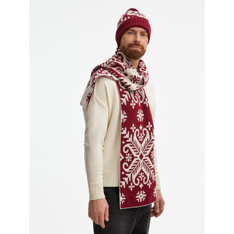 Шарф Wintertude выполнен из качественной полушерстяной пряжи в двух гармоничных цветах, которые подчеркивают сложный жаккардовый рисунок. Двухслойная структура обеспечивает дополнительное тепло и объем, сохраняя при этом легкость и мягкость.