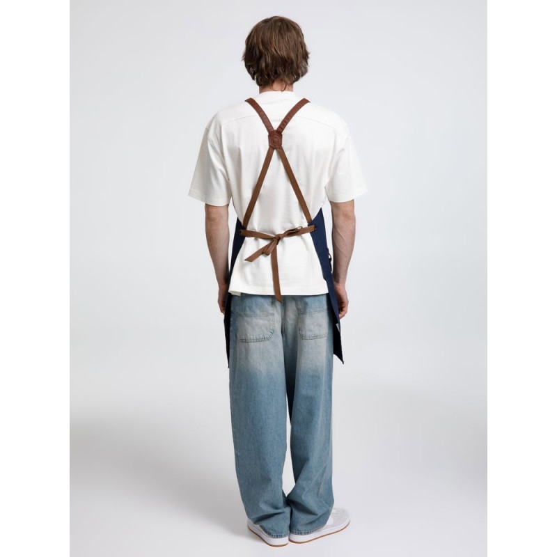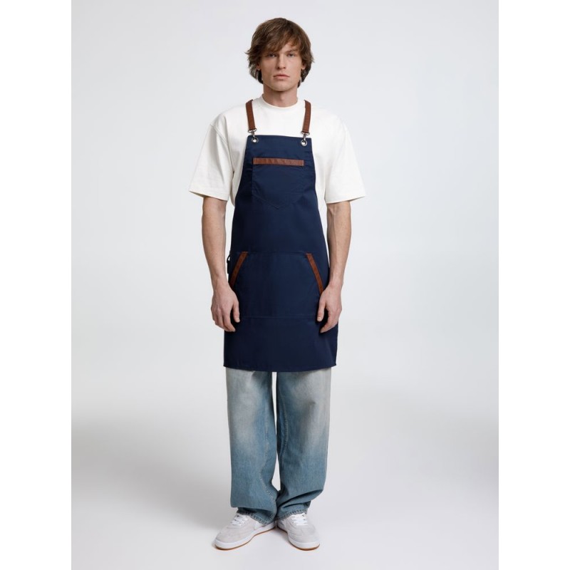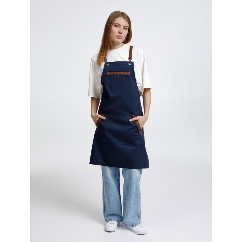 Функциональные карманы на груди и подоле эффектно украшают фартук, изготовленный из качественной дышащей плотной износостойкой ткани. Благодаря динамичным крестообразным лямкам он отлично сидит как на мужской, так и на женской фигуре. Кроме того, съемные лямки упрощают процесс стирки в стиральной машине.