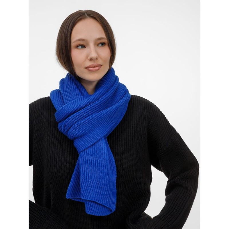 Широкий шарф из мягкой полушерстяной пряжи с выразительной фактурной вязкой создает современный запоминающийся образ.