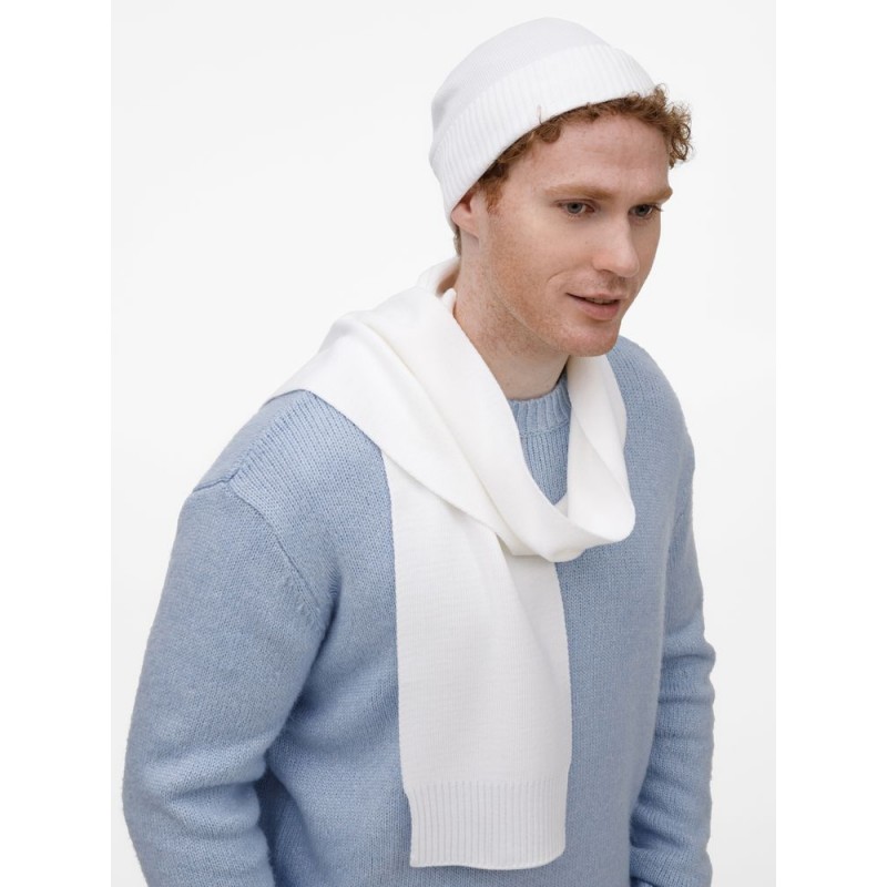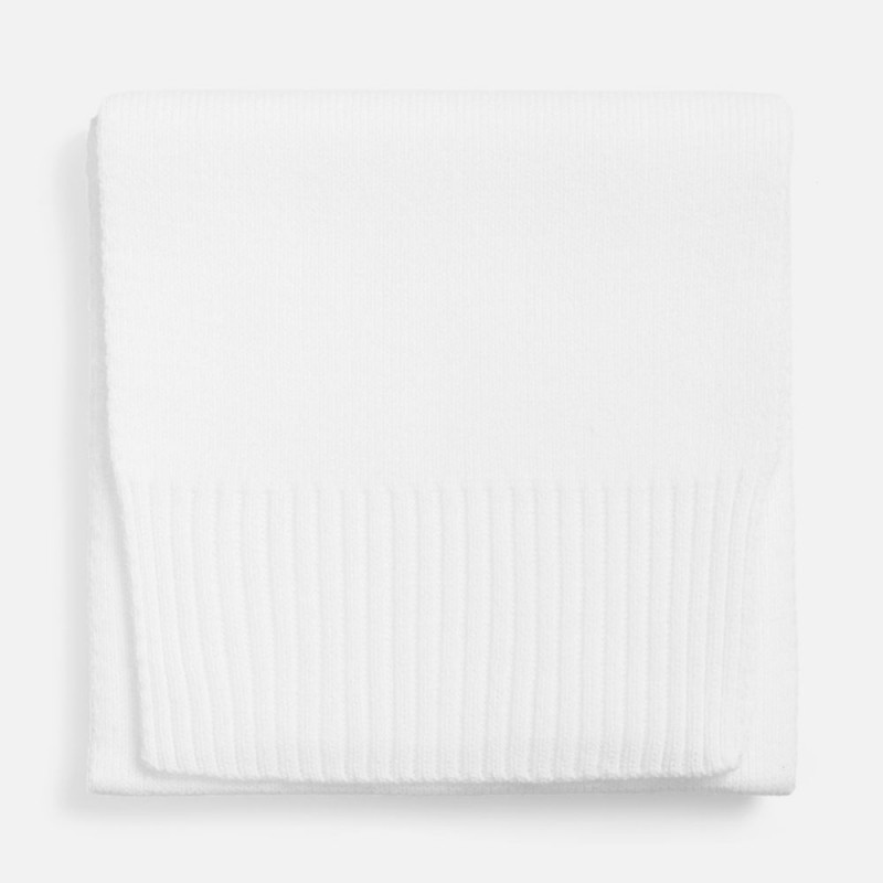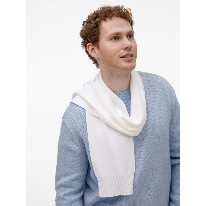Классический однослойный шарф гладкой вязки. Края, связанные резинкой, придают изделию завершенный и аккуратный вид.