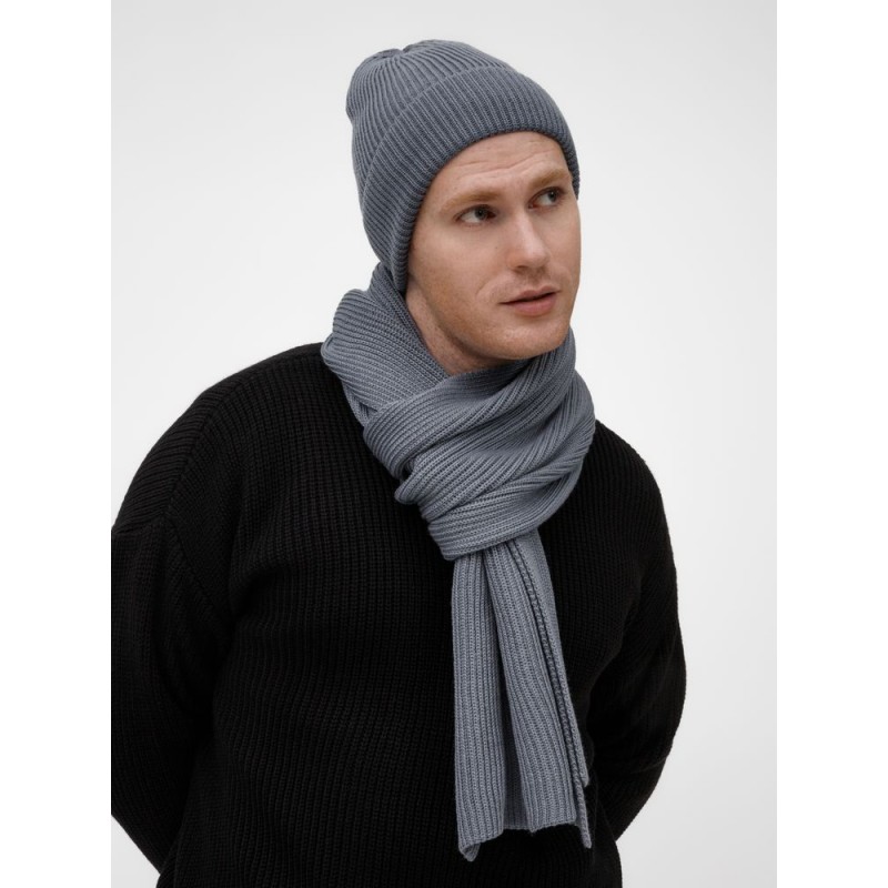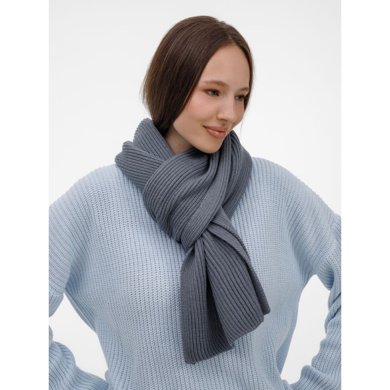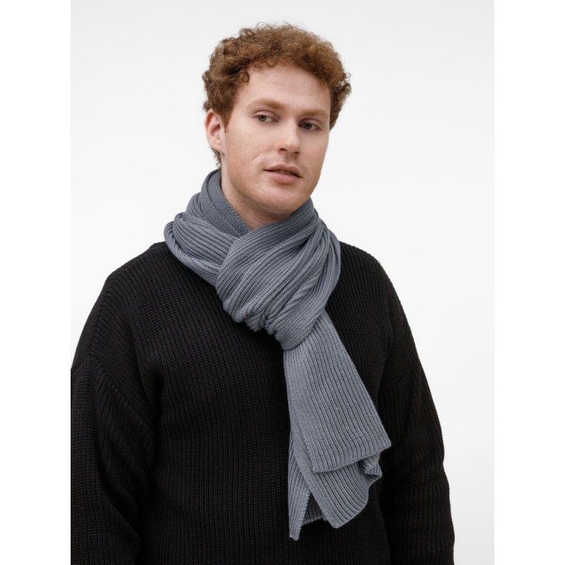 Широкий шарф из мягкой полушерстяной пряжи с выразительной фактурной вязкой создает современный запоминающийся образ.
